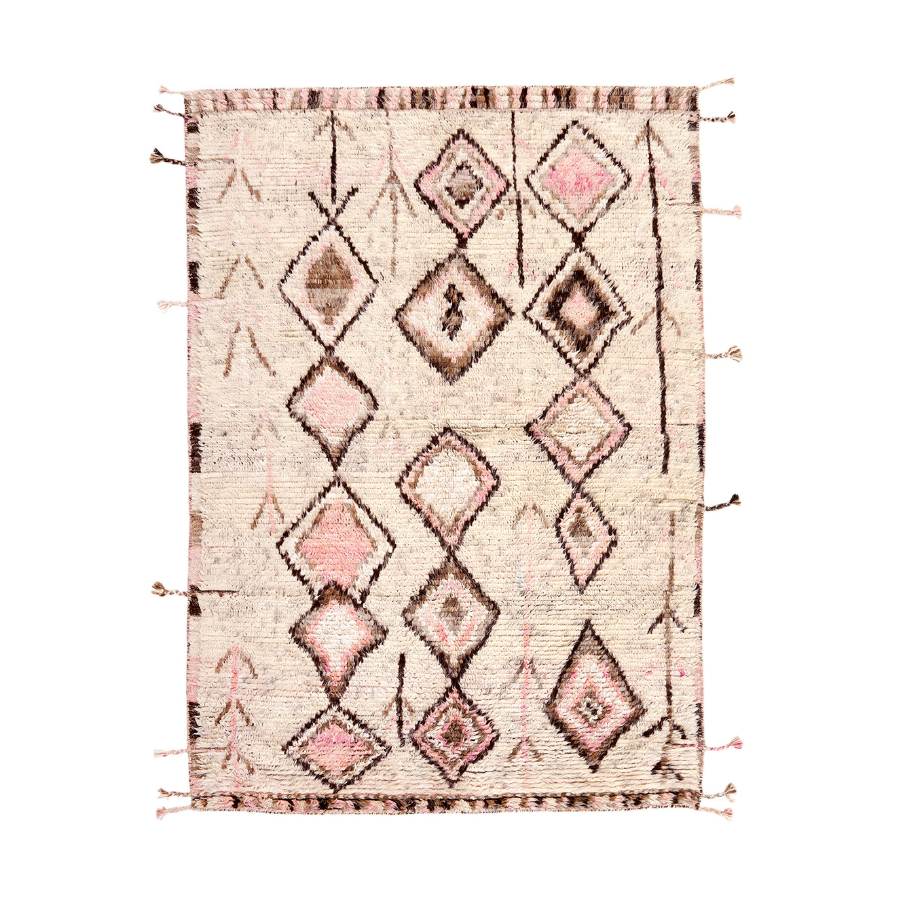 Oplev den tidløse skønhed og kvalitet med et håndknyttet tæppe i luksuriøs New Zealand-uld, inspireret af den marokkanske tæppetradition. Tæpperne i denne elegante kollektion forener klassiske marokkanske mønstre med moderne farver og en blød, slidstærk overflade – ideelt til både stue, soveværelse og spisestue.